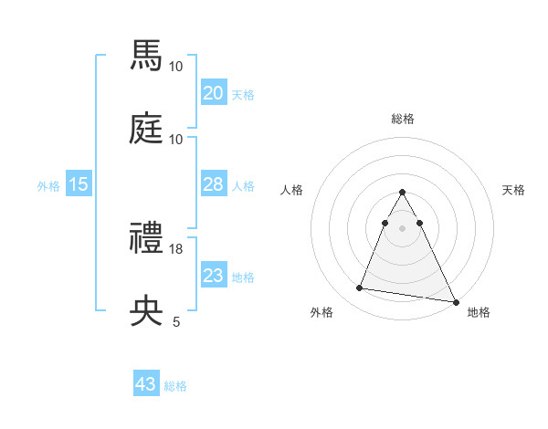 馬庭 禮央さんの総格は43画の2点!