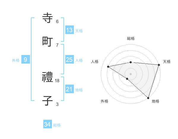 寺町 禮子さんの地格は21画の5点!