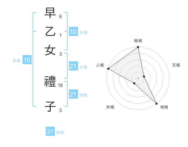 早乙女 禮子さんを姓名の画数から五運を鑑定