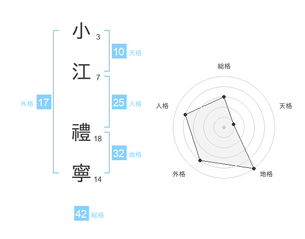 小江 禮寧さんの外格は17画の4点!