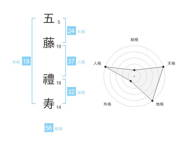 五藤 禮寿さんを姓名の画数から五運を鑑定