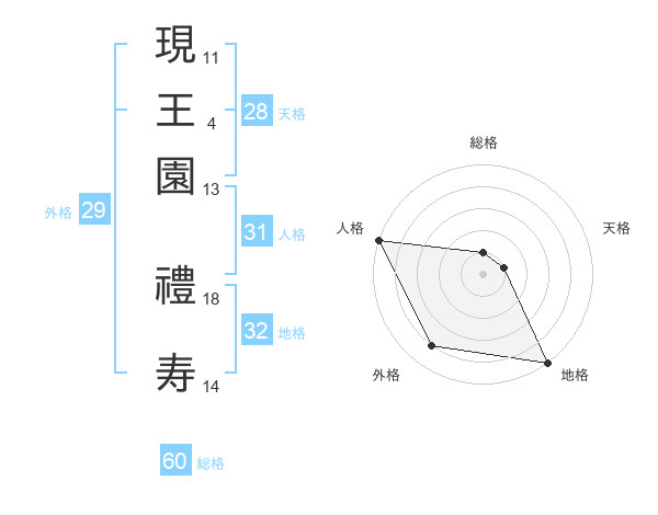 現王園 禮寿さんを姓名の画数から五運を鑑定