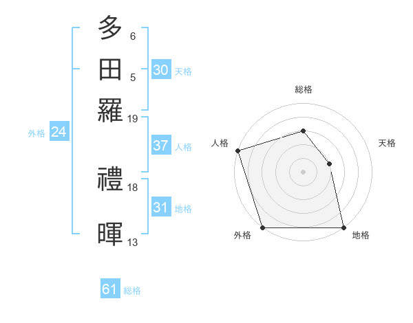 多田羅 禮暉さんを姓名の画数から五運を鑑定