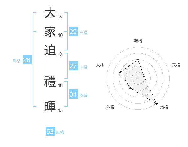大家迫 禮暉さんを姓名の画数から五運を鑑定
