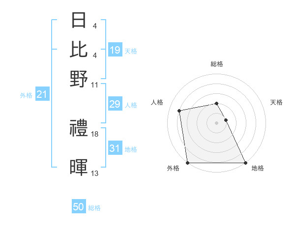 日比野 禮暉さんの総格は50画の2点!
