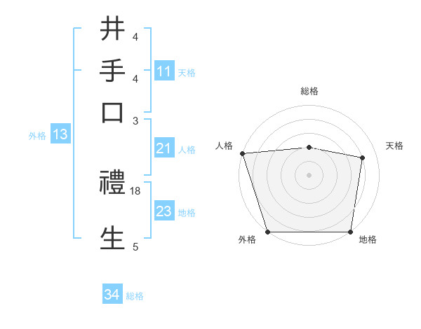 井手口 禮生さんを姓名の画数から五運を鑑定