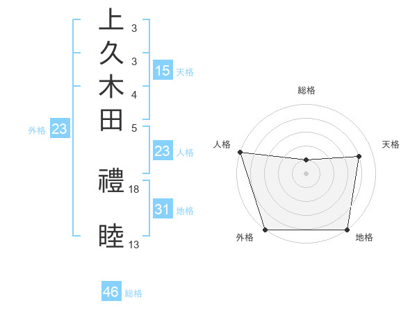 上久木田 禮睦さんを姓名の画数から五運を鑑定