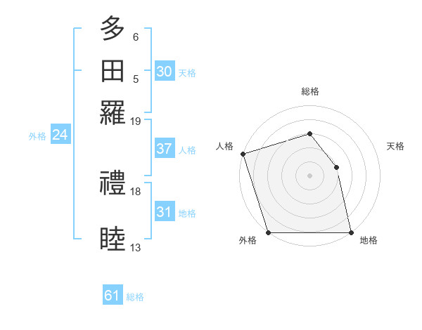 多田羅 禮睦さんを姓名の画数から五運を鑑定
