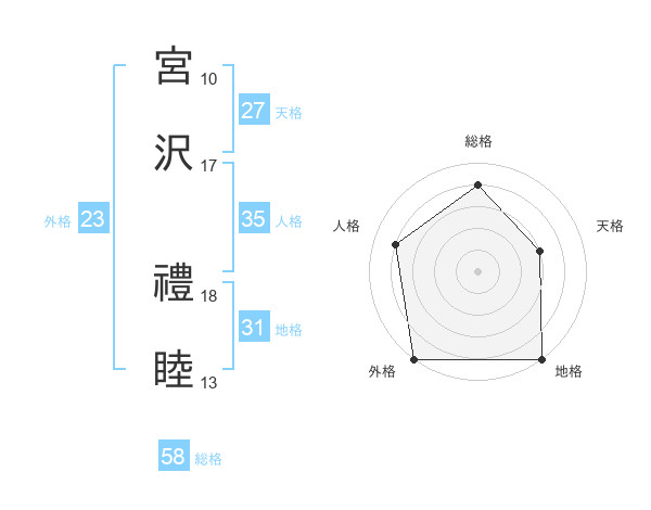 宮沢 禮睦さんの総格は58画の4点!