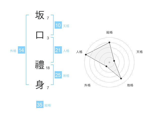 坂口 禮身さんの総格は35画の4点!