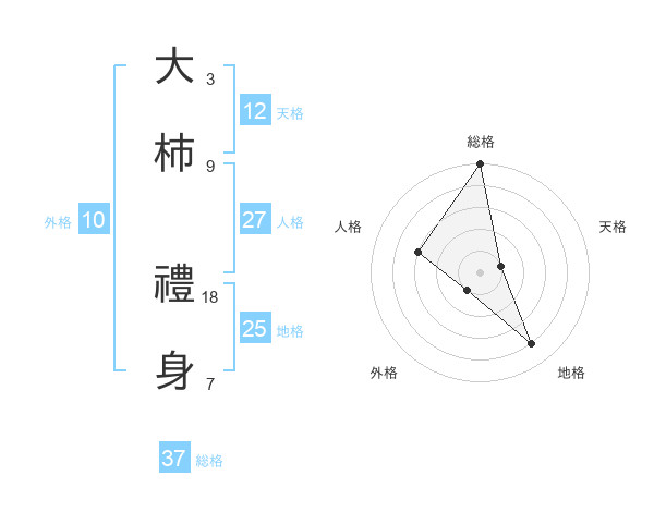 大柿 禮身さんの総格は37画の5点!