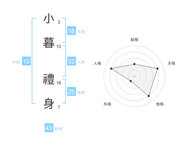 小暮 禮身さんの天格は18画の4点!