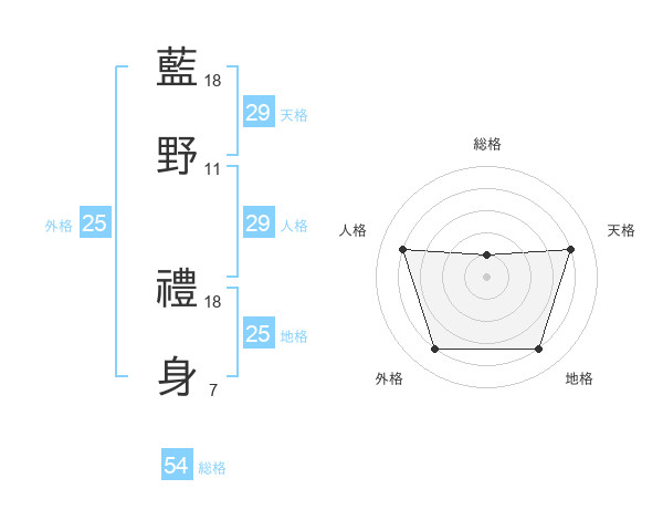藍野 禮身さんを姓名の画数から五運を鑑定