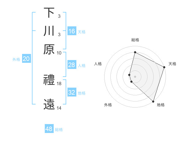 下川原 禮遠さんの総格は48画の4点!