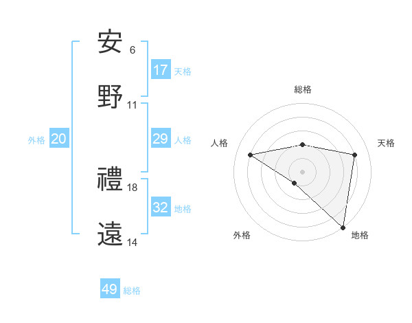 安野 禮遠さんを姓名の画数から五運を鑑定