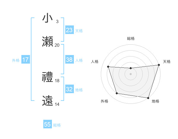 小瀬 禮遠さんを姓名の画数から五運を鑑定