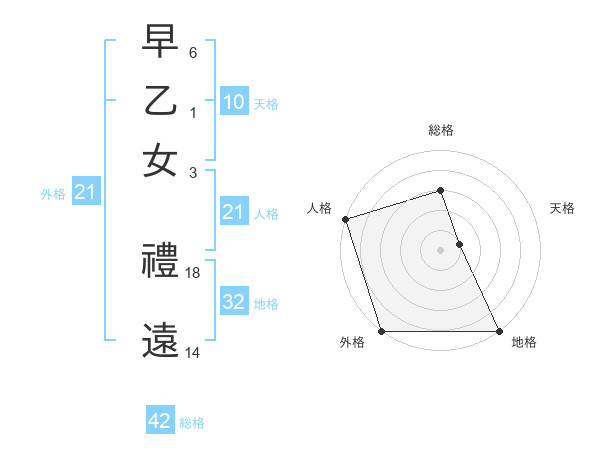早乙女 禮遠さんを姓名の画数から五運を鑑定