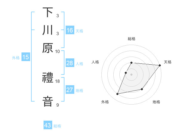 下川原 禮音さんの総格は43画の2点!