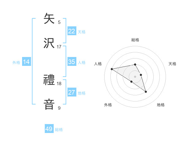 矢沢 禮音さんの天格は22画の1点!