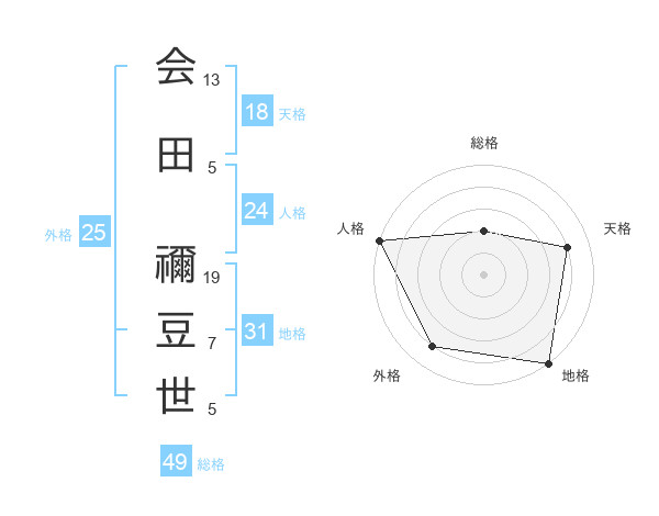 会田 禰豆世さんの総格は49画の2点!