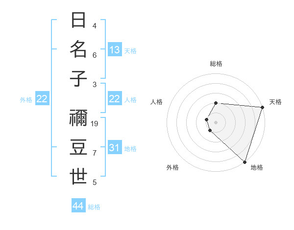 日名子 禰豆世さんを姓名の画数から五運を鑑定