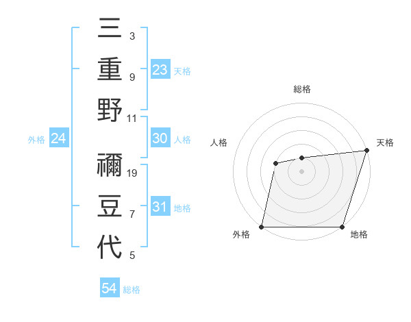 三重野 禰豆代さんを姓名の画数から五運を鑑定