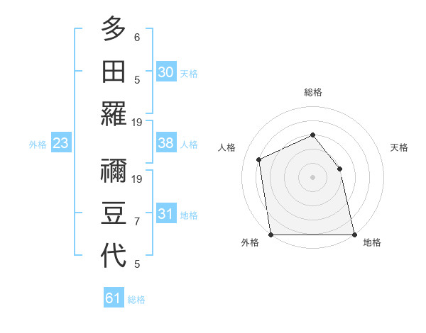 多田羅 禰豆代さんを姓名の画数から五運を鑑定