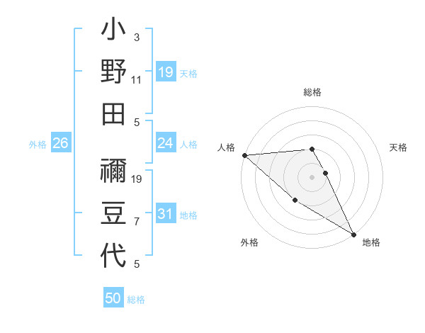 小野田 禰豆代さんの総格は50画の2点!