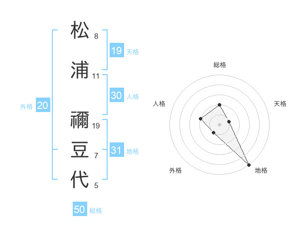松浦 禰豆代さんを姓名の画数から五運を鑑定
