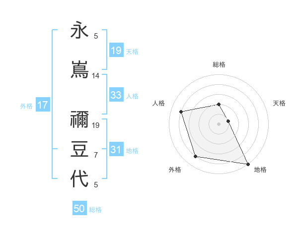 永嶌 禰豆代さんを姓名の画数から五運を鑑定