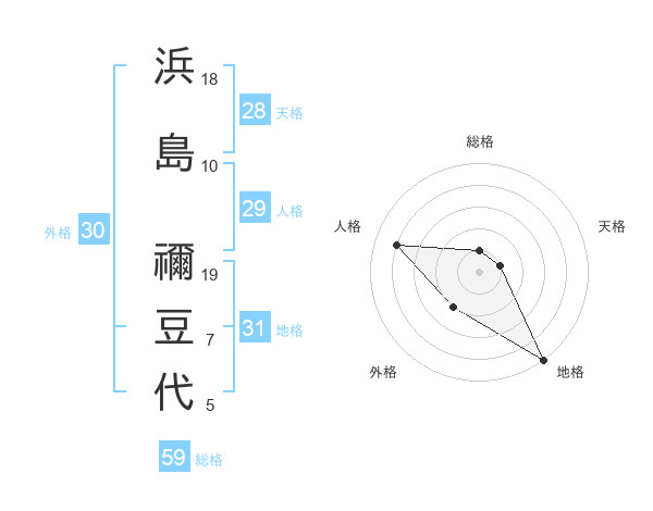 浜島 禰豆代さんを姓名の画数から五運を鑑定