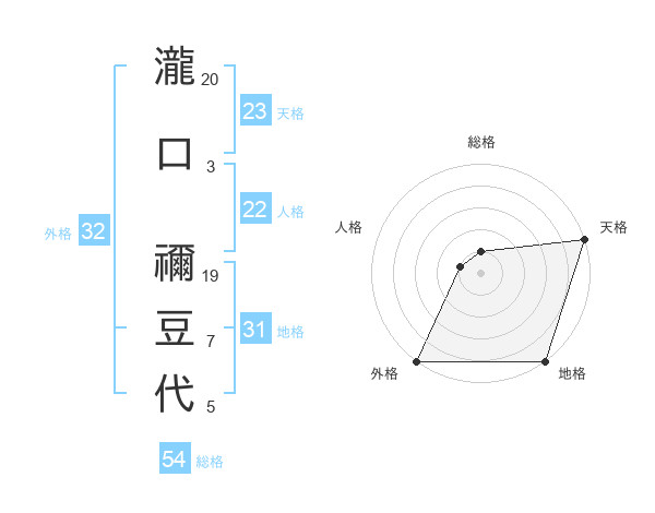 瀧口 禰豆代さんの天格は23画の5点!