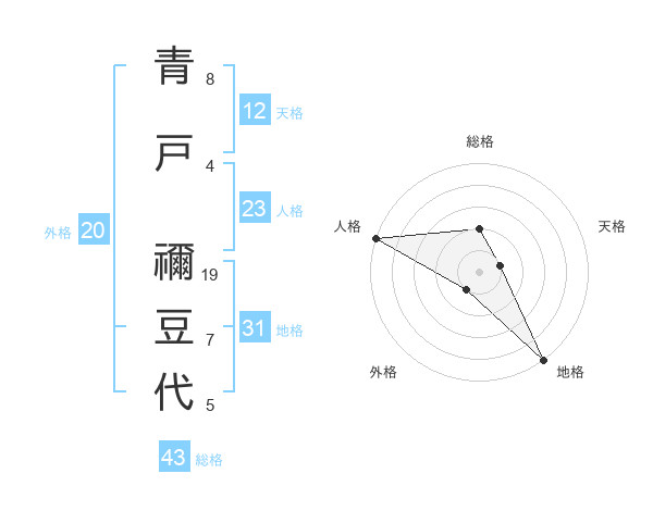 青戸 禰豆代さんの総格は43画の2点!