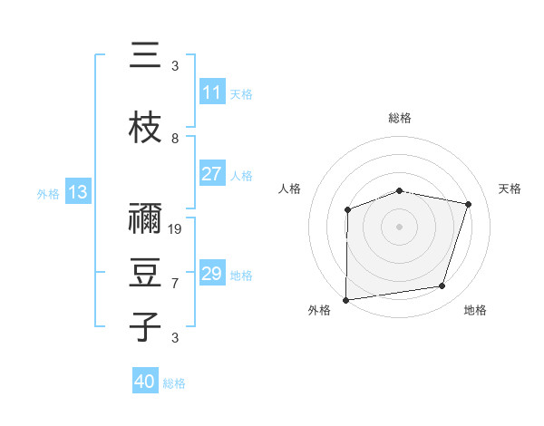 三枝 禰豆子さんを姓名の画数から五運を鑑定