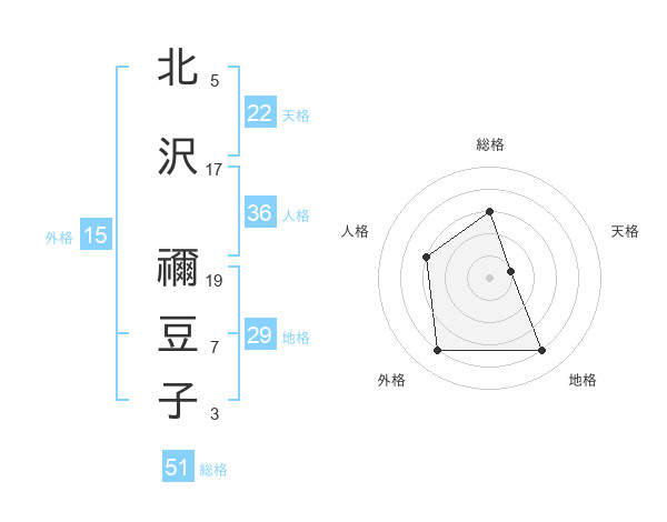 北沢 禰豆子さんを姓名の画数から五運を鑑定