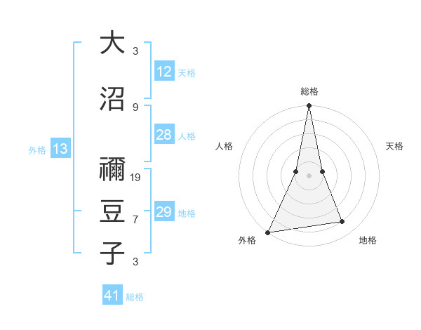 大沼 禰豆子さんを姓名の画数から五運を鑑定