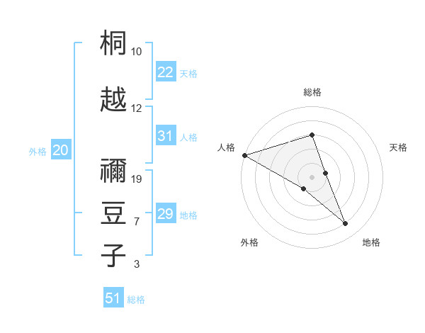 桐越 禰豆子さんを姓名の画数から五運を鑑定
