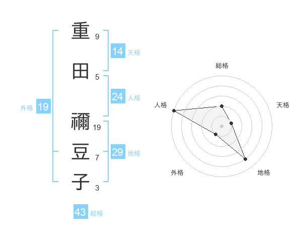 重田 禰豆子さんを姓名の画数から五運を鑑定