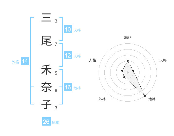 三尾 禾奈子さんを姓名の画数から五運を鑑定
