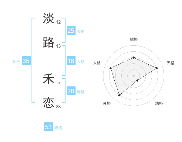 淡路 禾恋さんを姓名の画数から五運を鑑定