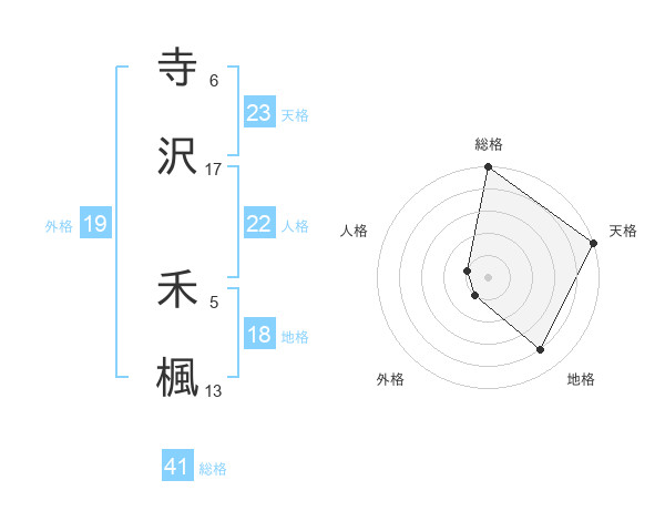 寺沢 禾楓さんの天格は23画の5点!