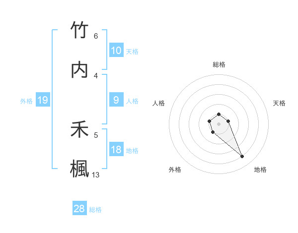 竹内 禾楓さんの外格は19画の1点!