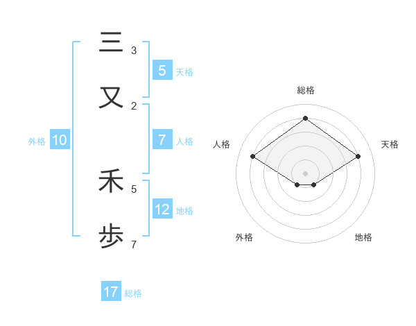 三又 禾歩さんを姓名の画数から五運を鑑定
