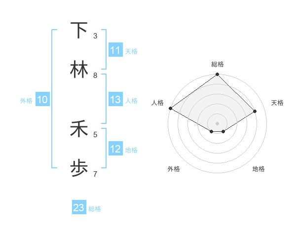 下林 禾歩さんの総格は23画の5点!
