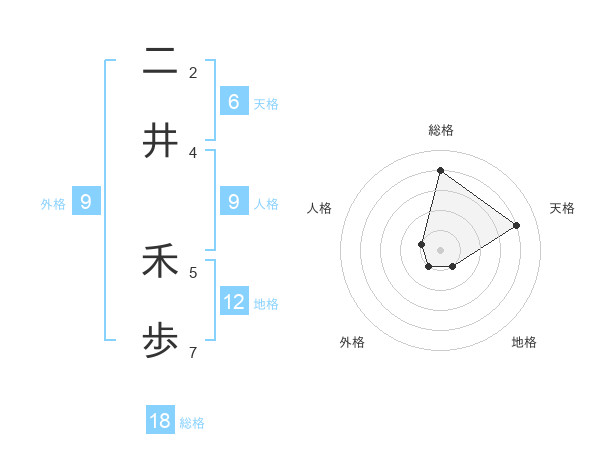 二井 禾歩さんを姓名の画数から五運を鑑定