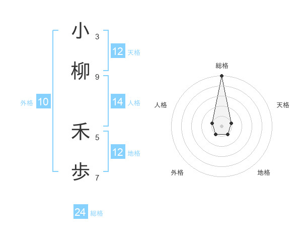 小柳 禾歩さんの総格は24画の5点!