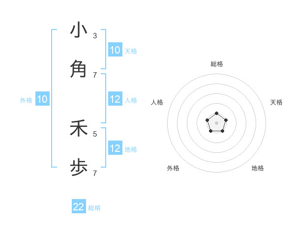 小角 禾歩さんの総格は22画の1点!