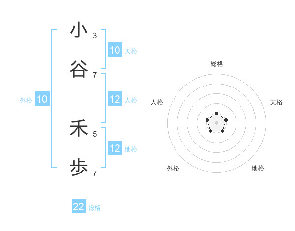 小谷 禾歩さんの総格は22画の1点!