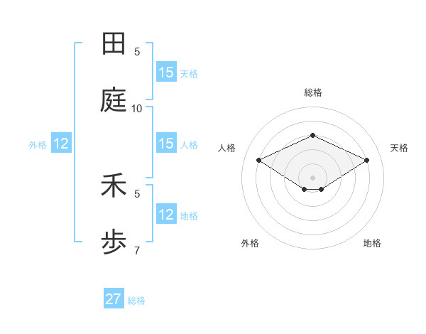 田庭 禾歩さんの天格は15画の4点!