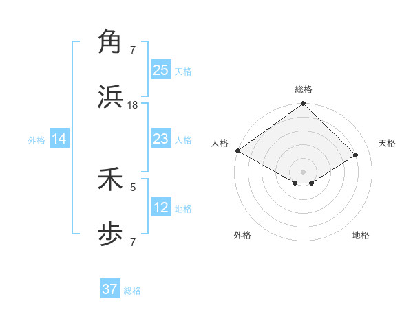 角浜 禾歩さんの総格は37画の5点!